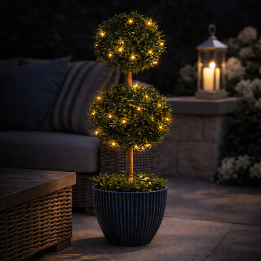 Trueliving Double Lighted Artificial Topiary Tree Planter