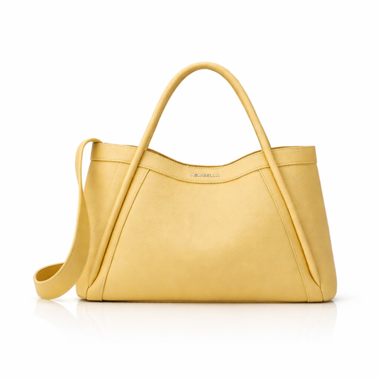 Kelly M 2pc Lychee Top Handle Bag Set, Yellow