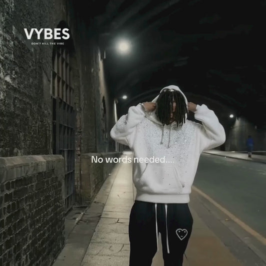 VYBES Rhinestone Galaxy Hoodie, White, Small