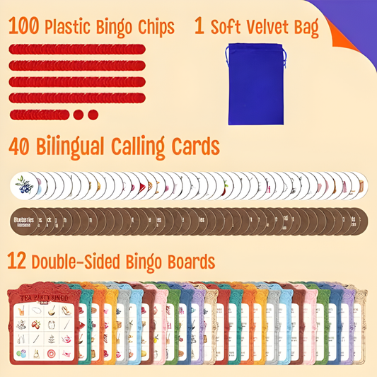 SpriteGru Tea Party Bingo Game, Bilingual English & Spanish