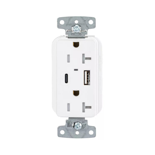 Bryant 20A USB Charger Receptacle Type C PD 55W Duplex Outlet White